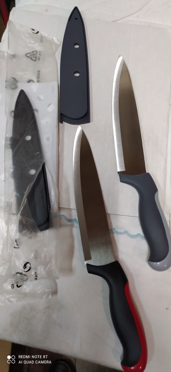 N.2 coltelli Tupperware grandi manico in fibra vulcanizzata da 13 cm lama in acciaio inox da 20 cm