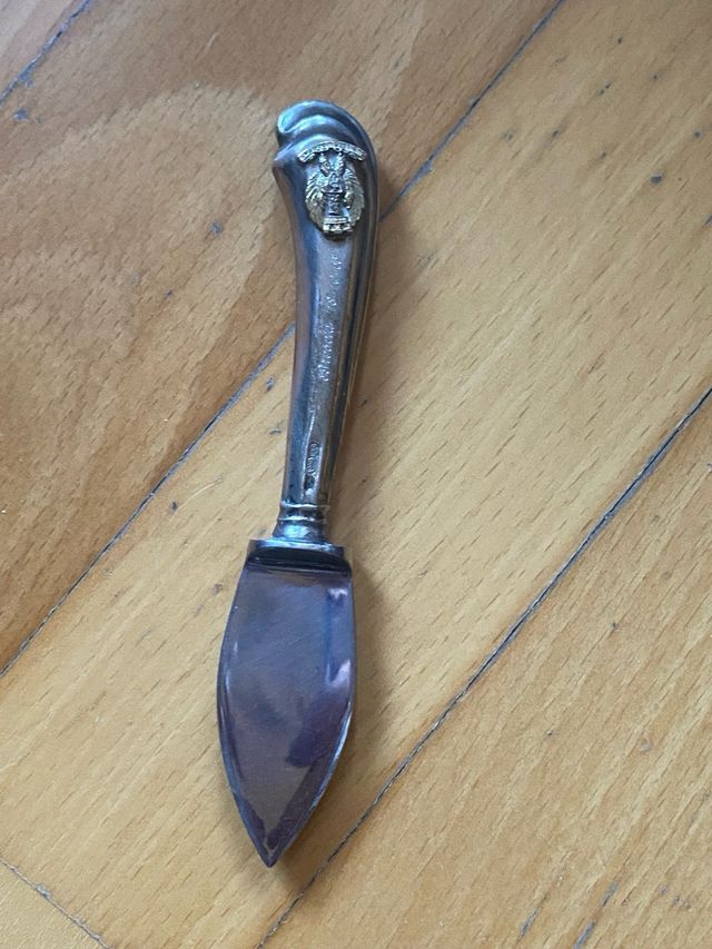 coltellino in argento 800 e acciaio inox del 1965 con stemma Polizia di Stato. Peso 60 grammi, lunghezza totale 13 cm