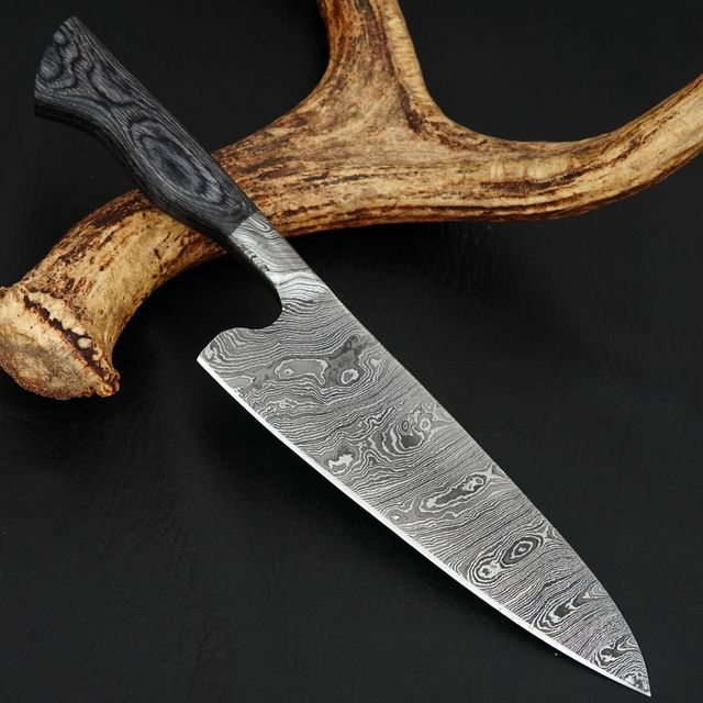 Vendo bellissimo coltello cuoco/cucina fatto a mano in acciaio damasco forgiato per maggiori informazioni mandami messaggio