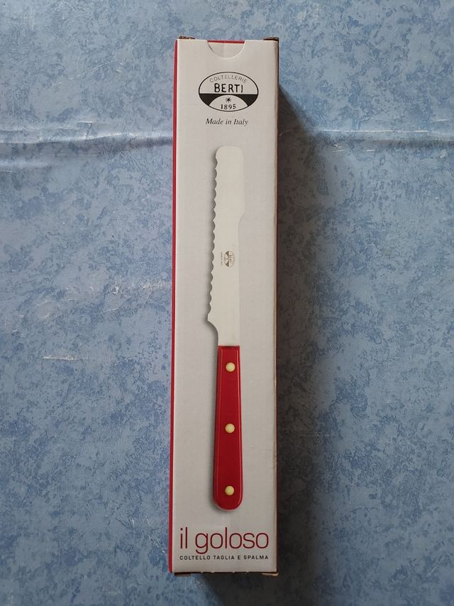 Cuchillo "IL GOLOSO" de Coltellerie Berti con doble función: cortar y untar. Hoja de acero reciclado de 13 cm. Hecho en Italia. Ideal para el desayuno o el aperitivo. Nuevo, en embalaje original. Varias piezas disponibles. Contáctame sin compromiso para dudas :)