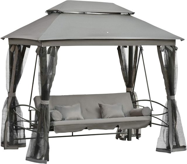 Dondolino da 3 Posti con Letto Singolo, Gazebo, Zanzariera e Cuscini 256X172X248Cm Grigio Scuro