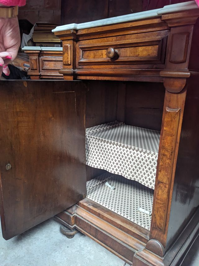 Coppia di comodini con ripiano in marmo. Epoca Luigi XVI. Possibile spedizione