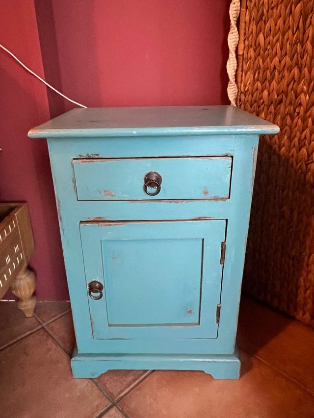 Coppia di comodini Shabby Chic Blu/Teal