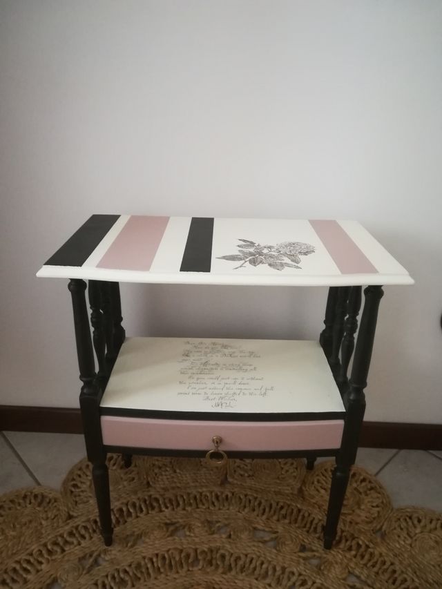 Dettagli del prodottoComodino stile inglese rivisitato e dipinto a mano. Pitture Magic Paint con finitura a cera. Misure: h 55, largh. 49, prof. 27 cm.