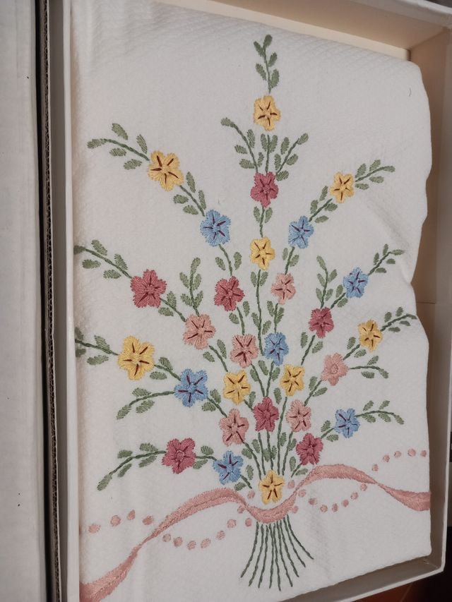 Dettagli del prodottoCompleto letto vintage lenzuolo sotto sopra e federe più copriletto ricamati a mano mai usati Misure del prodotto