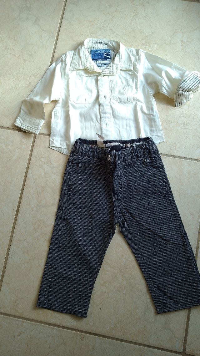 Completino per bambino composto da camicia e pantaloni in ottime condizioni brand sarabanda camicia misura s e pantaloni misura M con l'elastico regolabile