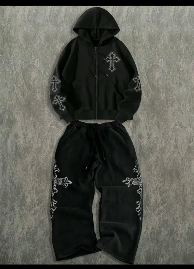 Completo 2 pezzi nero con stampa gotica