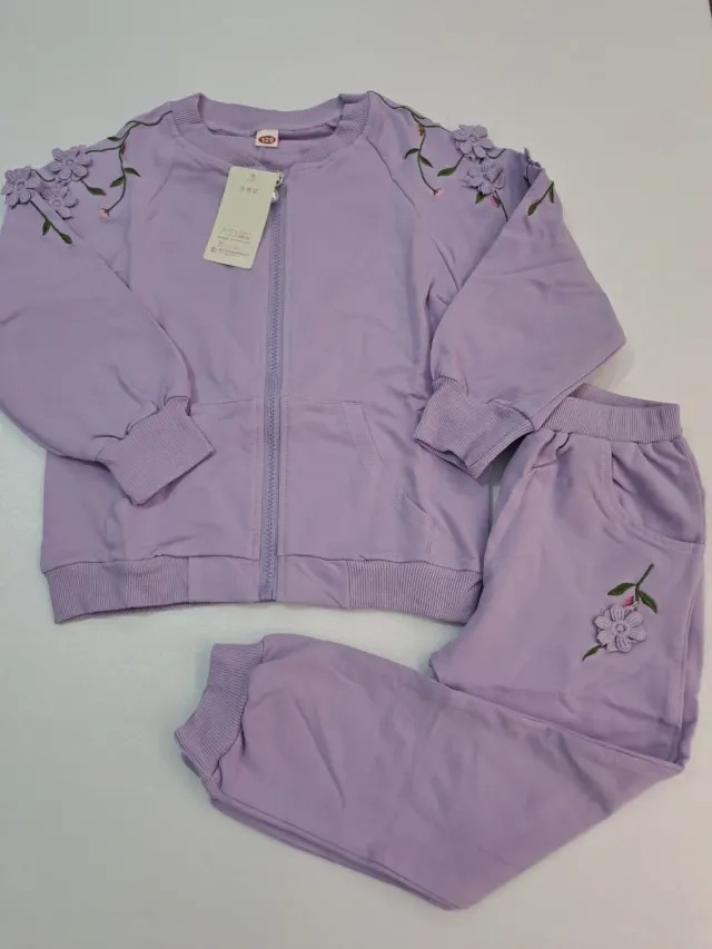 Dettagli del prodottoCompleto due pezzi per bambina in morbido tessuto lilla, perfetto per il tempo libero.
