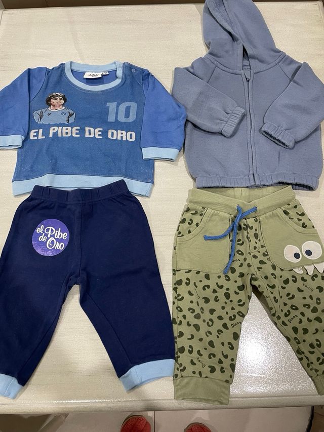 un completo El Pibe de Oro,una felpa con cappuccio Primark ,un pantalone verde Prenatal
