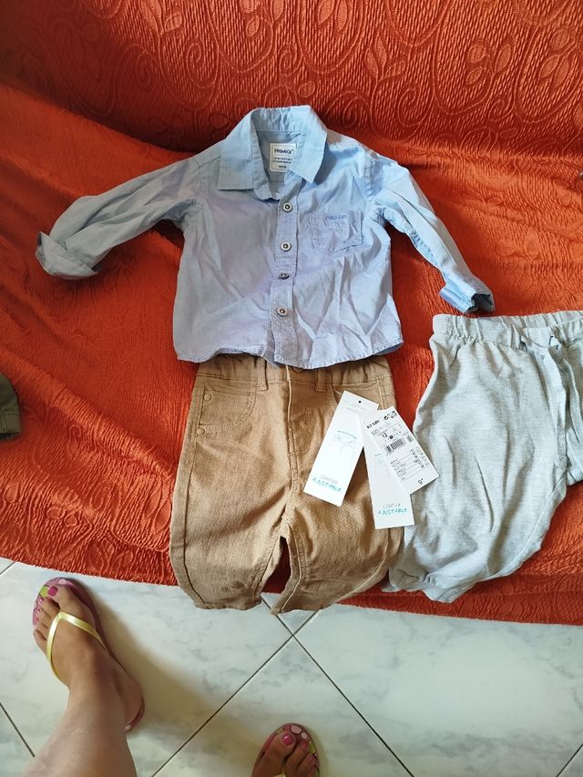 Dettagli del prodottoCompleto per bambino di 12 mesi, composto da una camicia a maniche lunghe Primigi color azzurro chiaro e due pantaloni, uno color beige e uno grigio chiaro. La camicia è in ottimo stato, i pantaloni sono in buone condizioni. Perfetto per un'occasione speciale o per tutti i giorni! - Camicia Primigi, taglia 12 mesi - Pantaloni beige, taglia 12 mesi - Pantaloni grigio chiaro, taglia 12 mesi