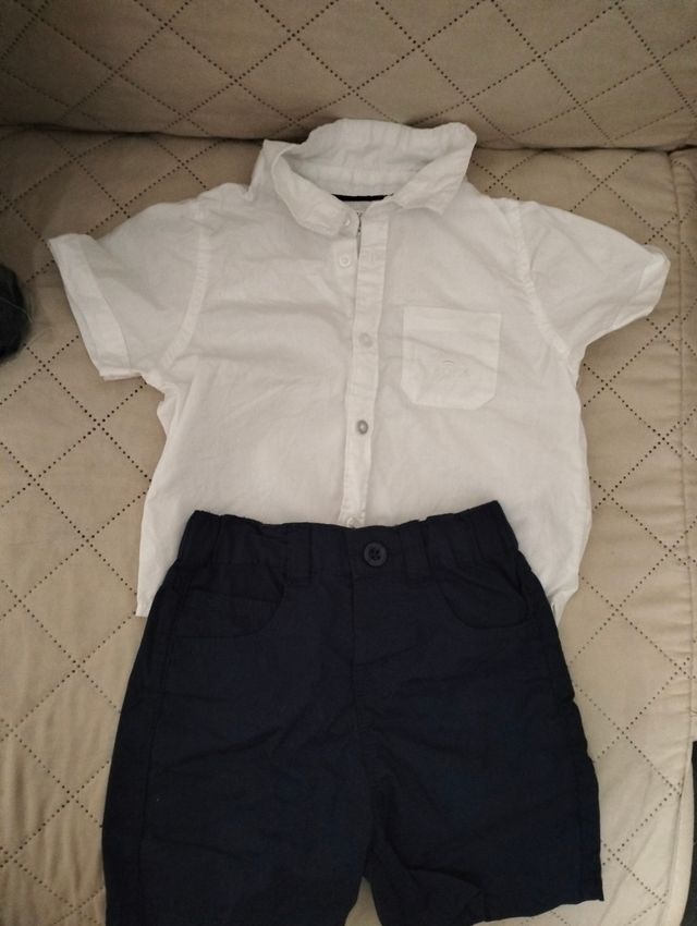 Dettagli del prodotto12-18 mesi.Completo elegante per bimbo, composto da una camicia bianca a maniche corte e pantaloncini blu scuro. - Perfetto per occasioni speciali. - La camicia è in tessuto leggero e traspirante. - I pantaloncini hanno una vestibilità comoda. - Entrambi i capi sono nuovi