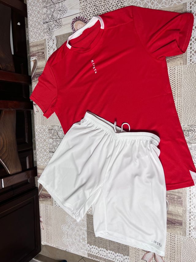 Dettagli del prodottoCompleto da calcetto Kipsta da uomo, taglia M, composto da maglia rossa e pantaloncini bianchi. Comodo e traspirante, perfetto per allenamenti o partite tra amici. Tessuto tecnico leggero che asciuga rapidamente e garantisce libertà di movimento. In ottime condizioni, usato pochissimo.