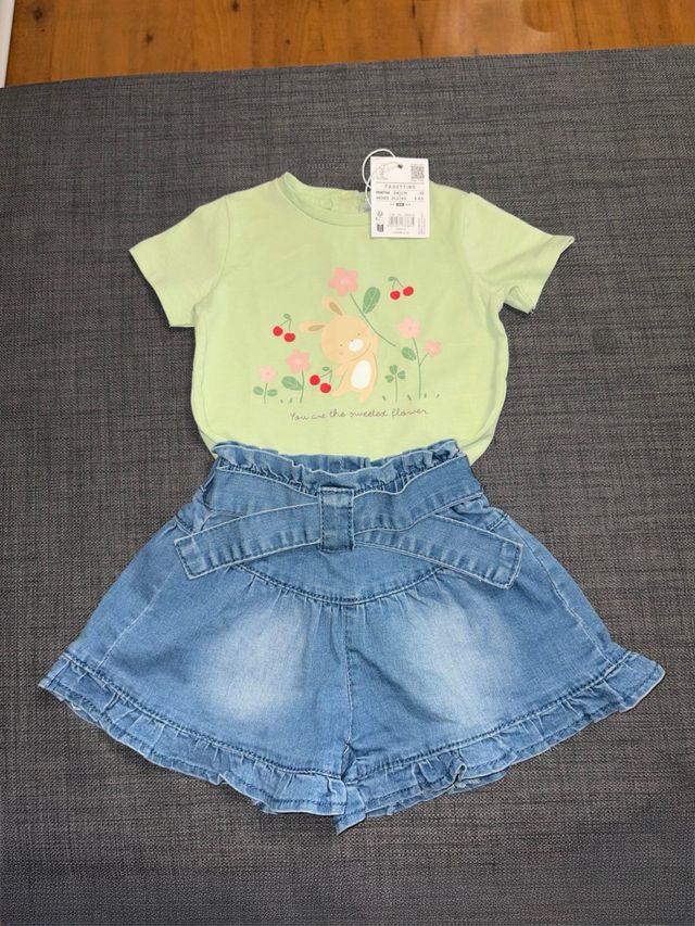 Dettagli del prodottoGrazioso completo per neonata firmato Fagottini, composto da maglietta e pantaloncini.