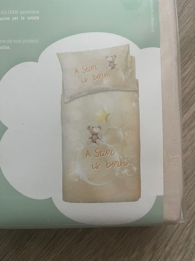 Dettagli del prodottoCompleto letto per culla o lettino con fantasia A Star is Born. dimensioni e dettagli in foto..nuovo mai aperto..prezzo originale 40€
