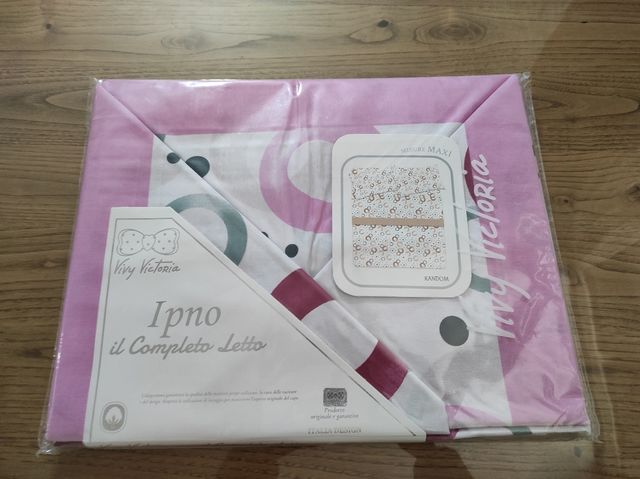 Dettagli del prodottocompleto letto matrimoniale nuovo, colore rosa e bianco con Fantasia 100% cotone composto da: