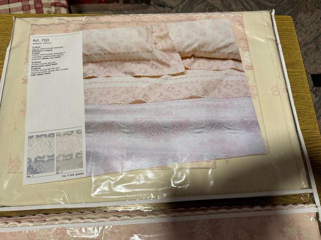 Dettagli del prodottoVendo parure matrimoniale mai stata usata, in confezione originale. Rifinitura a smerlo Misure del prodotto