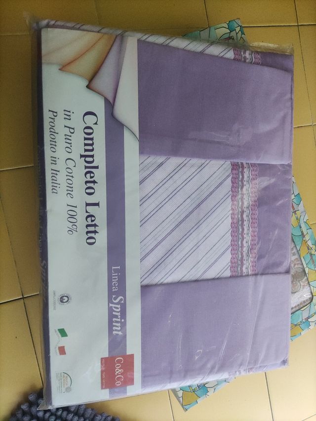 completo letto di cotone matrimoniale,colore lilla,nuovo,