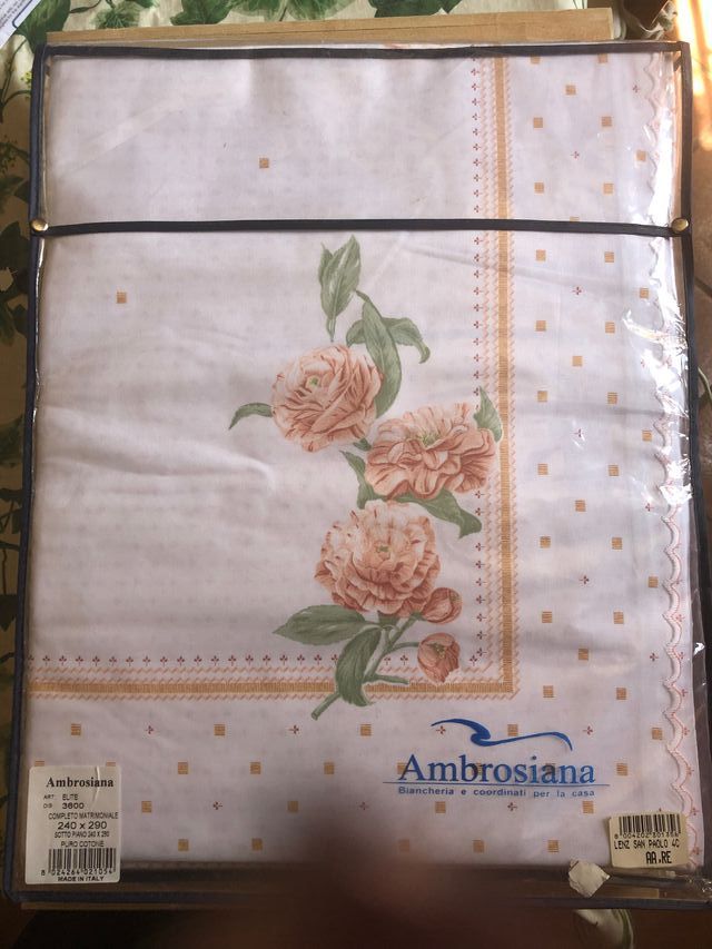 Set lenzuola letto matrimoniale estate 240 x 290 cm. Puro cotone con stampe floreali Marca Ambrosiana, nuovo, mai aperto.