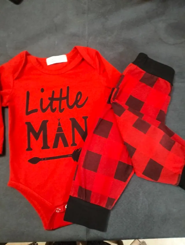 Dettagli del prodottoBellissimo completo per neonato Little Man in cotone rosso, perfetto per i più piccoli.