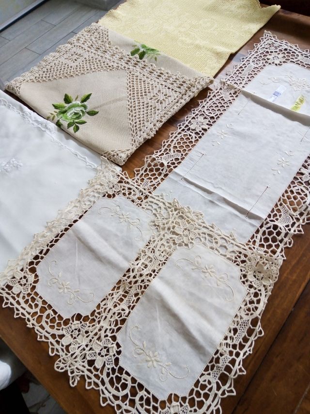 tris centri Burano, tovaglietta uncinetto ,tovaglietta bianca, striscia uncinetto
