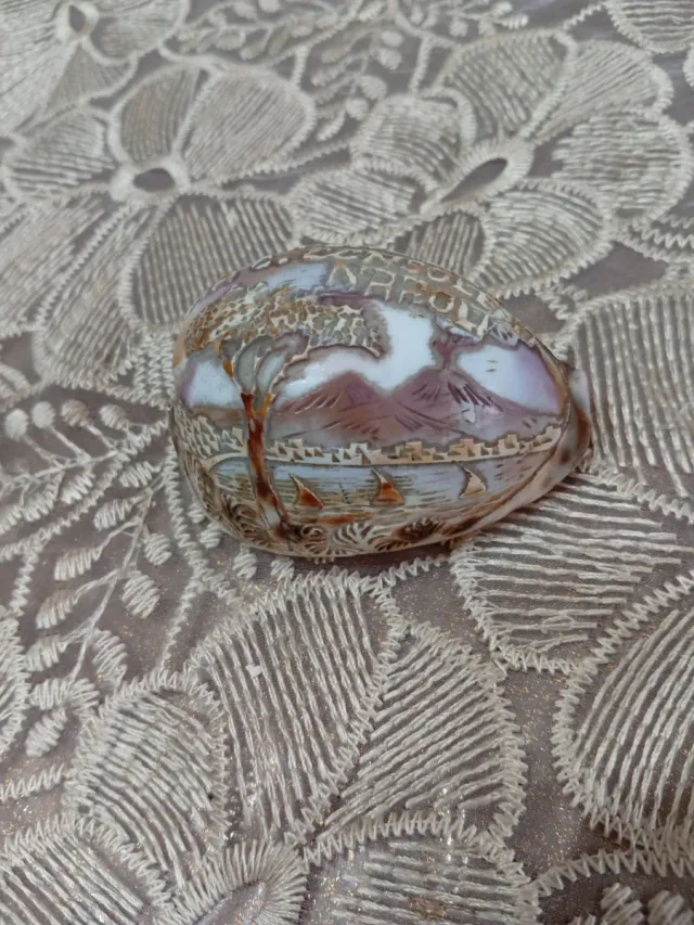 Dettagli del prodottoSplendida conchiglia cammeo, risalente ai primi del '900. Un pezzo d'antiquariato con un'intricata incisione rappresentante il golfo di Napoli
