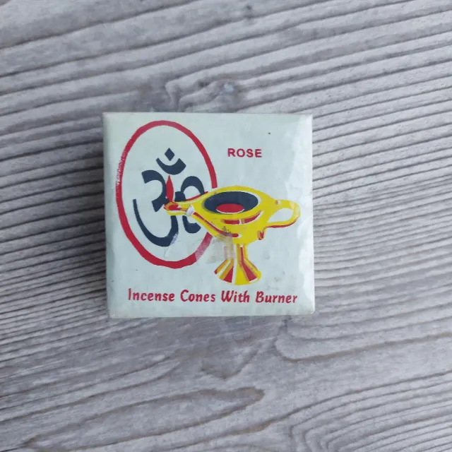 Conetti di incenso profumati alla rosa, completi di bruciatore. - Fragranza: Rosa - Simbolo Om sul packaging