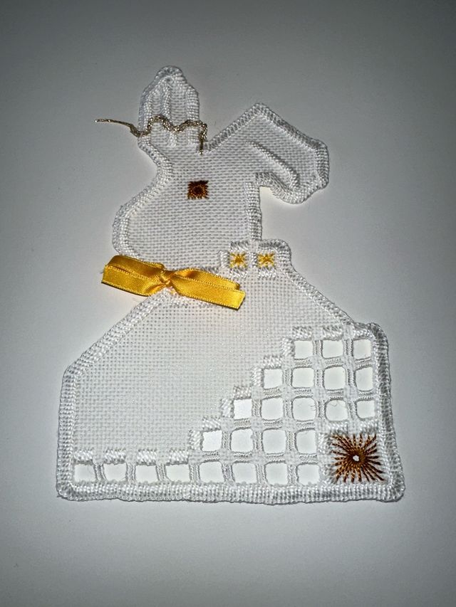 Coniglio Pasquale Ricamo Hardanger Bianco Oro