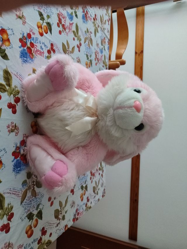 Dettagli del prodottoVendo peluche coniglietto rosa e bianco, alto circa 36 cm come si può vedere dalle foto. Il peluche è mio possesso da più di 30 anni è rimasto in cantina chiuso in una scatola e lo vendo solamente perché non lo utilizzo. Le condizioni del peluche sono buone.