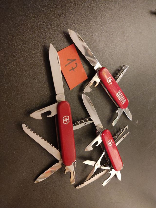 Dettagli del prodottoSet composto da 3 coltelli multiuso Victorinox, tutti e 3 in ottime condizioni. Presentano segni d'uso ma sono in condizioni eccellenti. Hanno solo bisogno di una messa a punto.