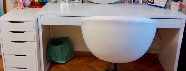 Set scrivania, cassettiera e sedia.