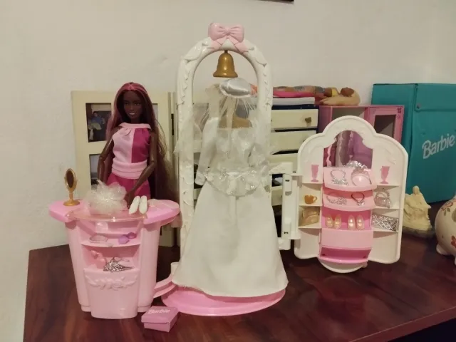 Dettagli del prodottoSet da sposa Barbie vintage, con accessori, ideale per collezionisti.