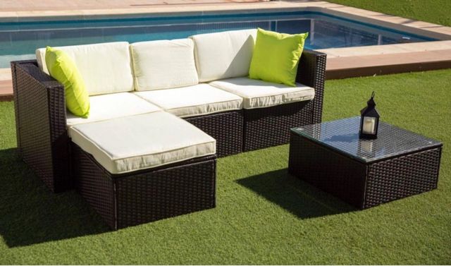 Set di divani e cuscini per esterni in rattan marrone