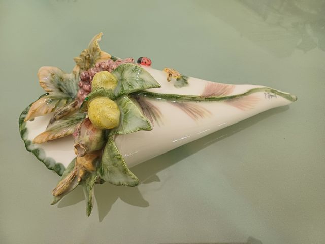 cono in ceramica firmata vintage lavorazione a rilievo lungo cm 28