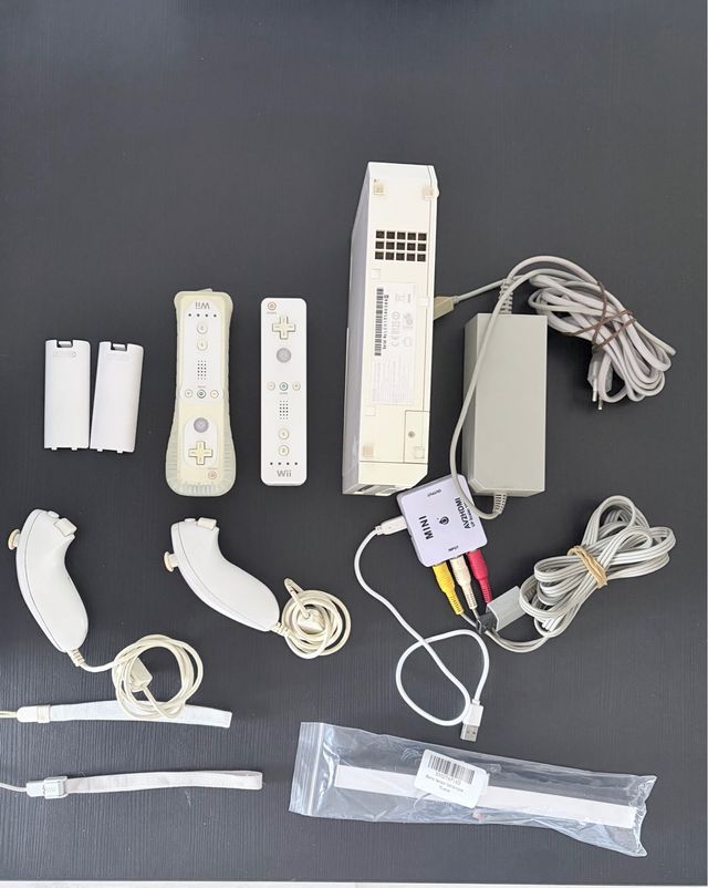Dettagli del prodottoNintendo Wii completa + 2 controller + 16 giochi | Compatibile con TV attuali In buone condizioni, molto curata e funzionante correttamente. Include tutto il necessario, pronta per essere collegata e giocare. !Non venduta separatamente! ✅ Console Nintendo Wii ✅ 2 controller ✅ Sensori e accessori ✅ Tutti i cavi ✅ Caricabatterie ✅ Adattatore per TV attuale Giochi inclusi: Wii Sports, Wii Fit, Mario Kart Wii, Super Mario Galaxy, LEGO Batman, Naruto Clash of Ninja 1 e 2, Tiger Woods PGA Tour 07, Shaun White Snowboarding, I Simpson: Il Videogioco, Tomb Raider Underworld, The Sims 2: Naufraghi, FIFA 09 All Play e Cocoto Magic c La descrizione è stata tradotta automaticamente.