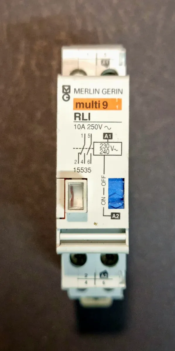 Contattore Merlin Gerin multi 9 RLI. - Modello: RLI - Marca: Merlin Gerin - Serie: multi 9 - Tensione: 250V~ - Corrente: 10A