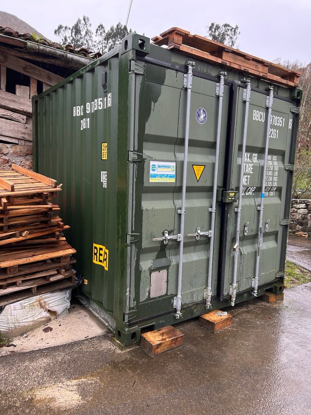 Contenedor marítimo de 3 metros de longitud. Ideal para almacenamiento o transporte. - Color verde. - Marcado BBCU 970351