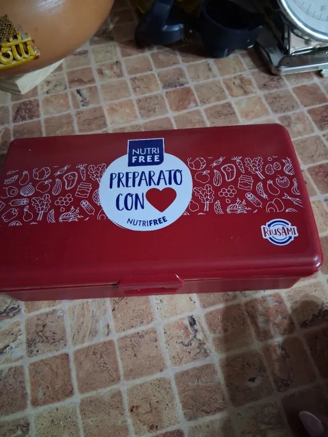 Dettagli del prodottoContenitore rosso per merendine, ideale per conservare snack.