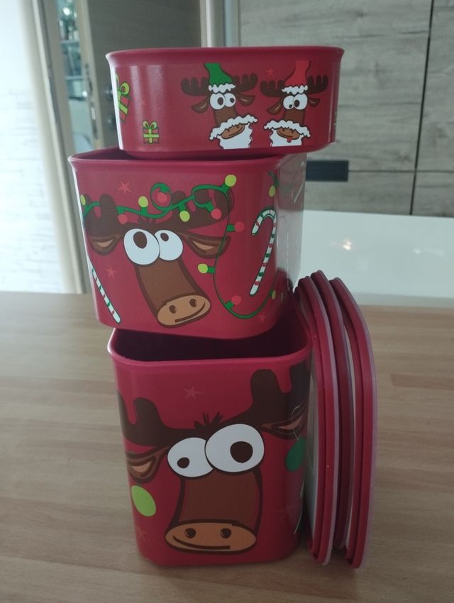 contenitori in plastica in 3 diverse misure ognuno col rispettivo coperchio