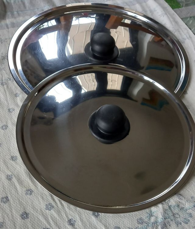 n. 2 grandi coperchi, uno di 38 cm di diametro, uno di 32, entrambi muniti di valvola di sfiato, usati poco o niente, vendo per inutilizzo.