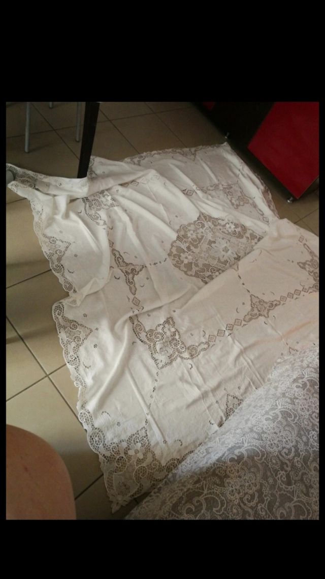 Coperta matrimoniale in lino con applicazioni di Burano. Nuovo. 2,50*2,23 FATTA COMPLETAMENTE A MANO