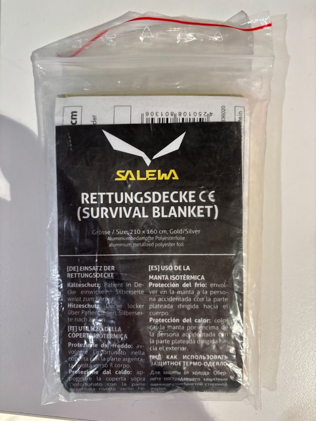 Dettagli del prodottoCoperta termica Salewa Rettungsdecke (Survival Blanket) in alluminio.
