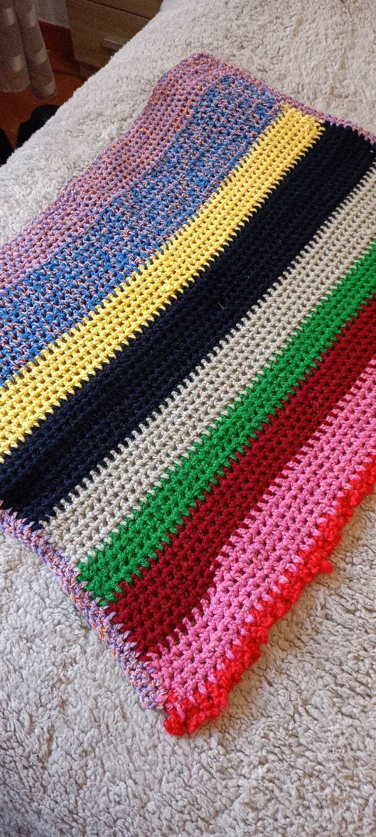 - Righe in diverse tonalità di rosa, rosso, verde, grigio, nero, giallo e blu.