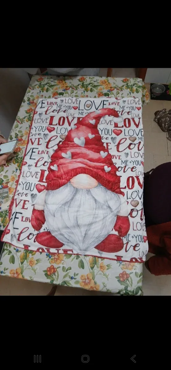 Copertina morbida con un simpatico gnomo perfetta per la culla. - Design con GNOMOcuori. - Motivo LOVE ripetuto sullo sfondo.