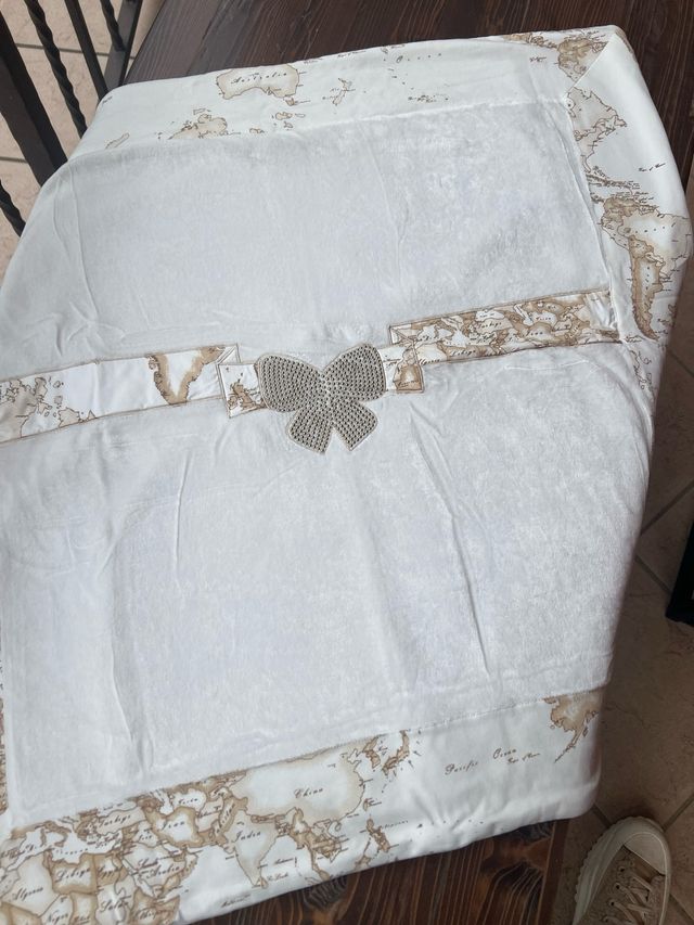 Dettagli del prodottoCopertina per neonata firmata Alviero Martini Prima Classe, con un elegante design a tema mappa.