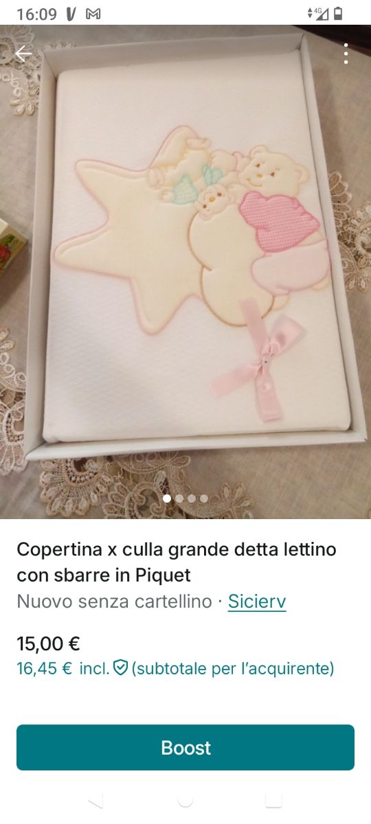 Dettagli del prodottoCopertina in cotone Piquet, adatta per culla o lettino con sbarre. Presenta un'applicazione a forma di stella con orsetti e un fiocco rosa.
