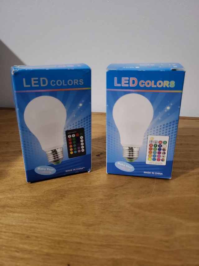 LED RGB con telecomando, luci che cambiano colore, regolazione della luminosità e lampadina a 270 gradi.