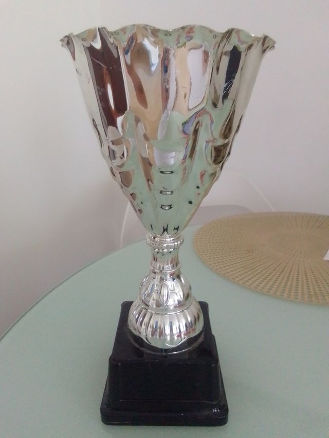 Coppa in metallo lucido con base nera. - Design elegante e rifinito. - Ideale per premiazioni o come oggetto decorativo. Base in plastica 31 x 15 cm