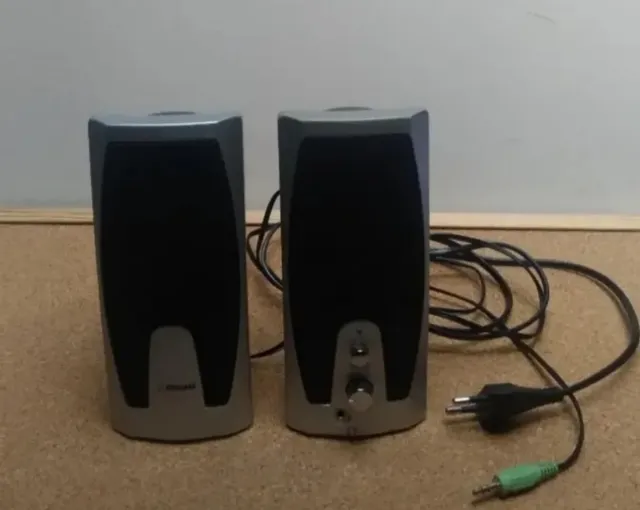 Coppia di altoparlanti per PC dal design moderno. - Colore grigio e nero. - Cavo di alimentazione e jack audio inclusi.