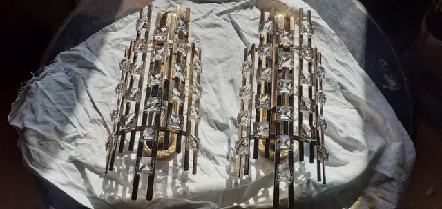 Dettagli del prodottoCOPPIA APPLIQUE DEGLI ANNI 70-80 PROBABILE PRODUZIONE "SCIOLARI",BUONE CONDIZIONI GENERALI,CRISTALLI INTEGRI + ALCUNI CRISTALLI DI RICAMBIO,IMPIANTO ELETTRICO DA VERIFICARE,MONTANO UNA LAMPADINA ATTACCO PICCOLO,LE MISURE SONO:LUNGHEZZA CIRCA 35 CM,LARGHEZZA 12 CM ,PROFONDITA' 10CM.