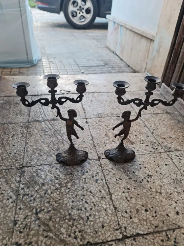 Coppia Candelabri Ottone Cherubini